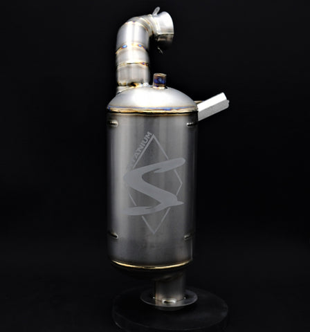 Diamond S Titanium Quiet Lightweight Silencer, weighs just 4 pounds while still providing a 3.5 horsepower increase. Diamond S exhausts do not require fuel changes or modifications. Simply bolt-on and go. The titanium exhaust has a noise-canceling baffled design. This eliminates the need for packing, making it one of the quietest if not the quietest aftermarket exhausts. Our lightweight silencer will pass the SAE J-2567 stationary sound test (stationary snowmobile noise emission may not exceed 88 decibels). Unlike steel, titanium is highly resistant to rust and corrosion providing a longer product life. Compared to steel, titanium has a high strength to weight ratio, making it possible to build an extremely strong exhaust system while at the same time providing very substantial weight savings over stock and other aftermarket exhausts. Our titanium exhaust provides an overall weight savings of 11.6 pounds.