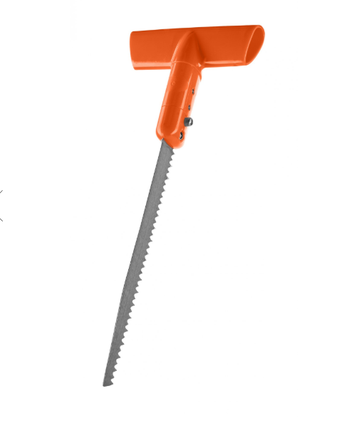 The SHOVEL KODIAK SAW is made of hardened and anodized aluminum. Automatic locking allows for quick assembly. The oval-shaped and thus extremely rigid shaft is telescopic, enabling easy set up. Thanks to a rubber coating on the ergonomic T-grip, it is extremely non-slip and sits particularly well in the hand.